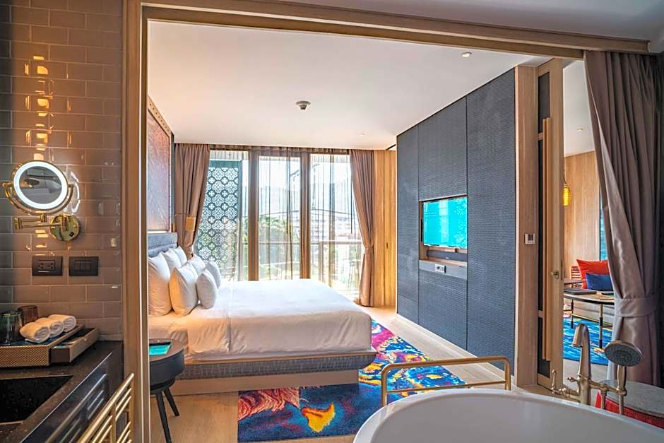 Featuring unique design, the spacious suite offers a seating area, an private bathroom with a rain shower and a coffee maker. USB ports are also provided.